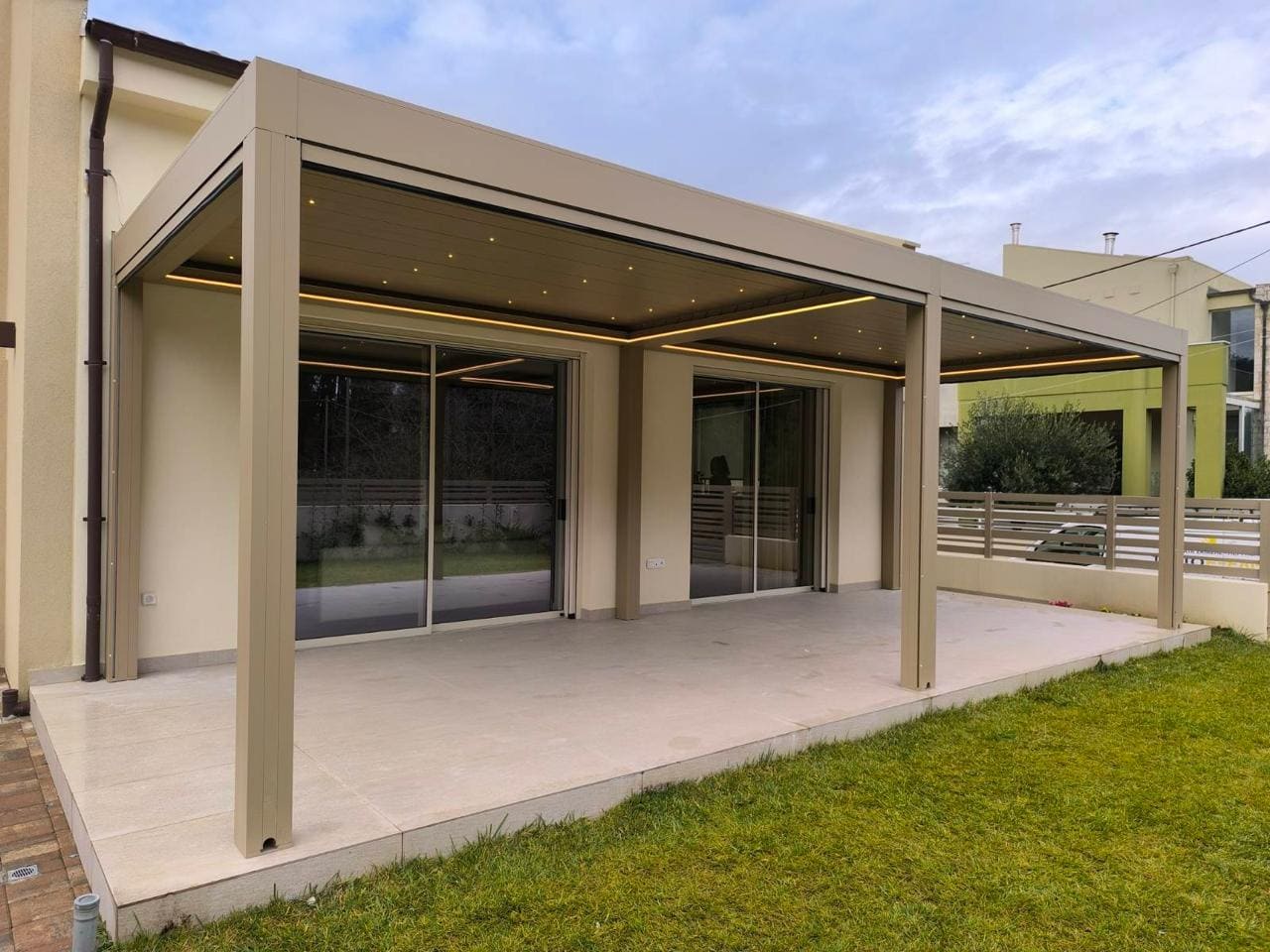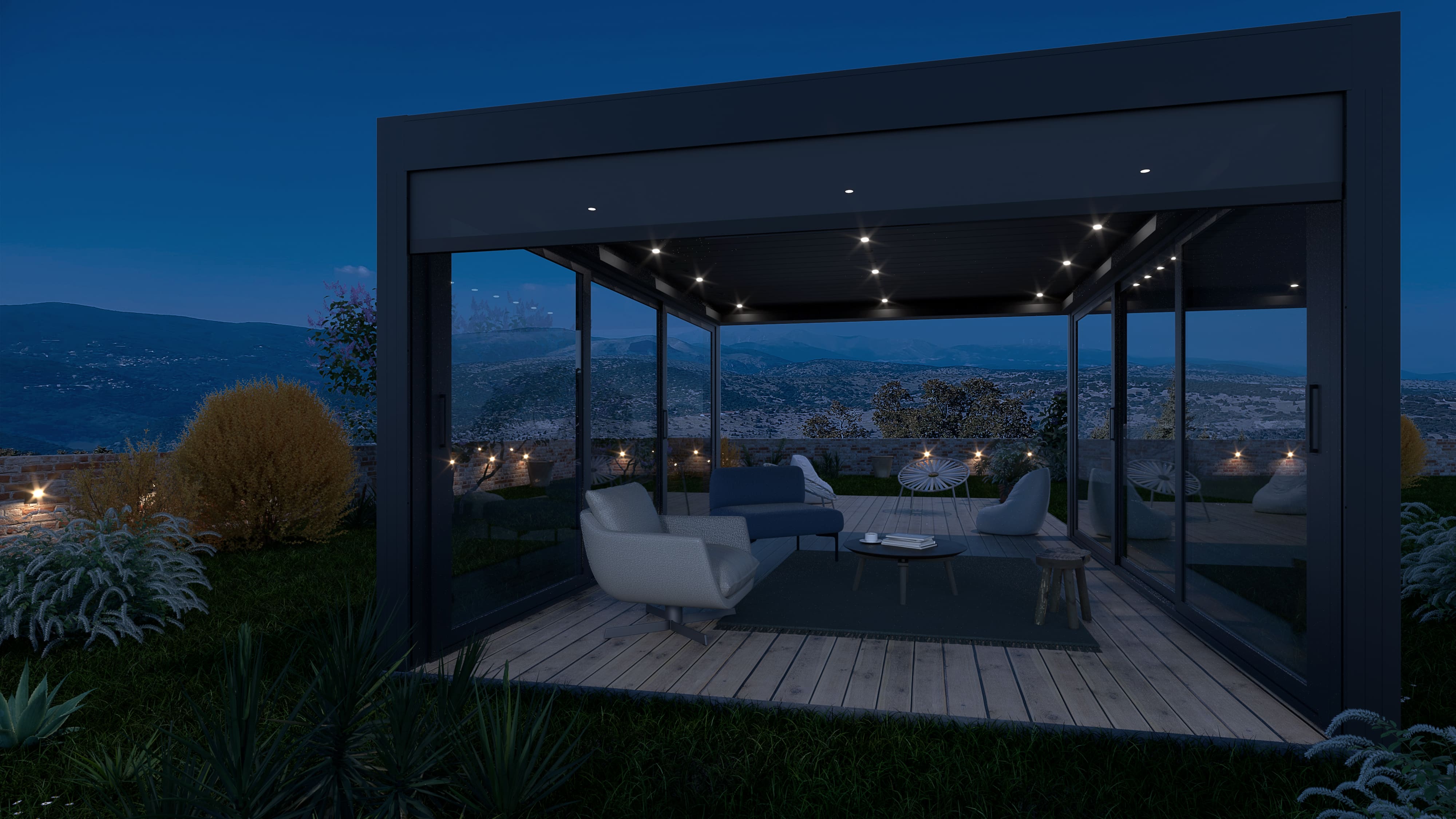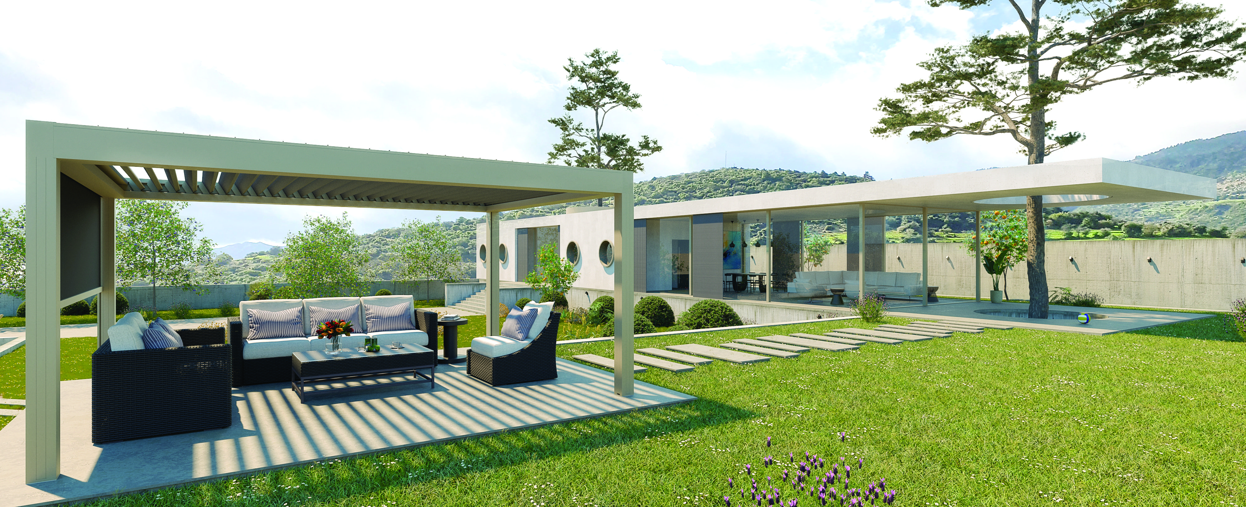 La bioclimatica senza compromessi, top di gamma della serie Louvresystem®. Tende integrate nel fascione perimetrale e zip completamente integrata nel palo, gronde perimetrali che possono coprire grandi dimensioni e si adattano a progetti residenziali e commerciali. LA soluzione perfetta per chi vuole raggiungere il massimo del comfort per una struttura outdoor: possibilità di integrare le vetrate perimetrali e le tende ombreggianti in una struttura lineare e d’ impatto.Scopri il piacere di vivere il tuo outdoor grazie alle linee essenziali e le prestazioni incredibili della bioclimatica Alghero.