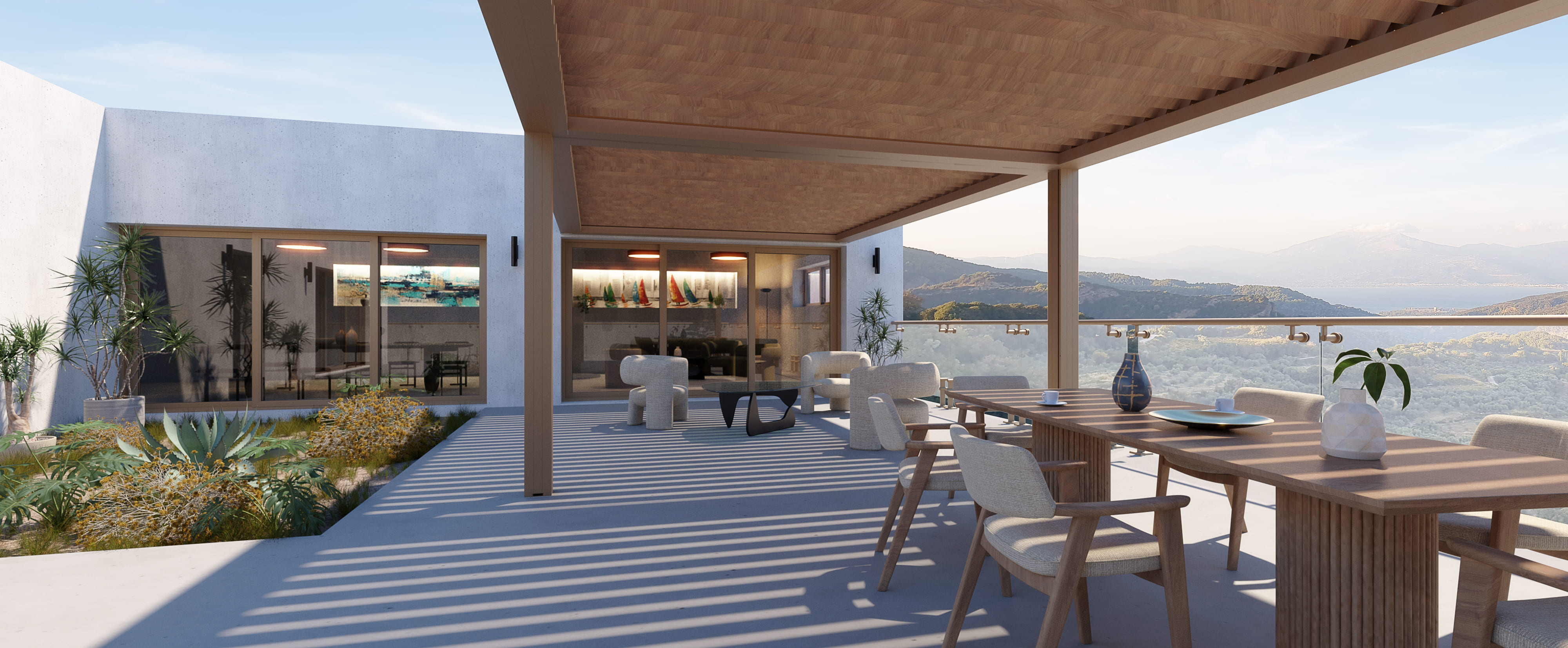 La bioclimatica senza compromessi, top di gamma della serie Louvresystem®. Tende integrate nel fascione perimetrale e zip completamente integrata nel palo, gronde perimetrali che possono coprire grandi dimensioni e si adattano a progetti residenziali e commerciali. LA soluzione perfetta per chi vuole raggiungere il massimo del comfort per una struttura outdoor: possibilità di integrare le vetrate perimetrali e le tende ombreggianti in una struttura lineare e d’ impatto.Scopri il piacere di vivere il tuo outdoor grazie alle linee essenziali e le prestazioni incredibili della bioclimatica Alghero.