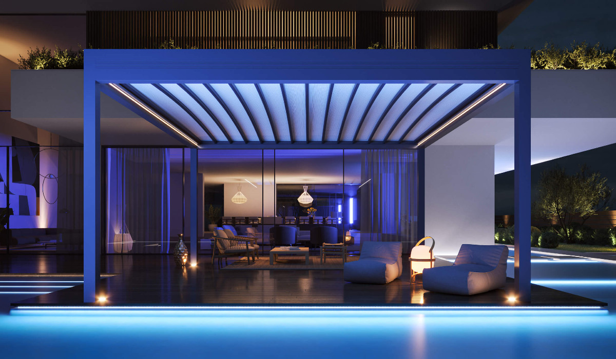 Vivi l’esperienza unica di trascorrere momenti di relax e divertimento in un’elegante area esterna, completamente protetta da tutte le condizioni meteorologiche. Vivi l’esperienza della pergotenda Compact.