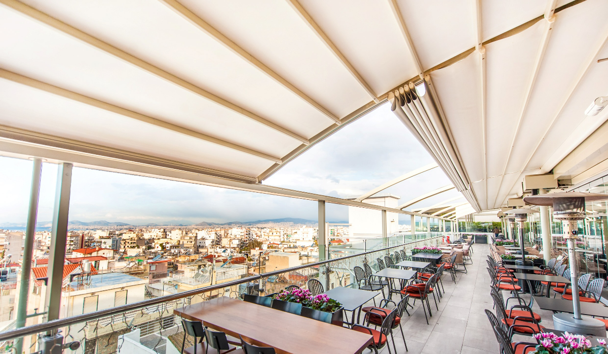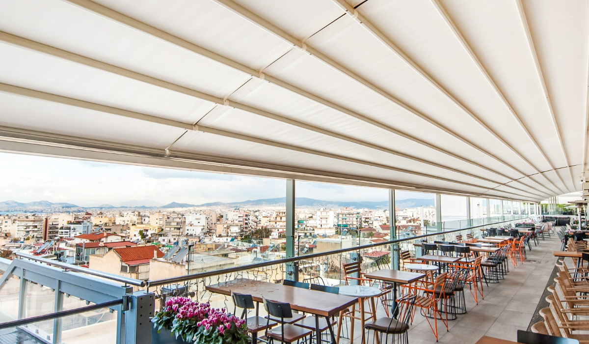 Il modello Pergosystem Idea Fl presenta una costruzione diversa dal resto. Il suo design ellittico crea la sensazione del calore di uno spazio pronto ad accogliere tutti i presenti, conferendogli un effetto moderno e fuori dal comune. Ideale per negozi.
