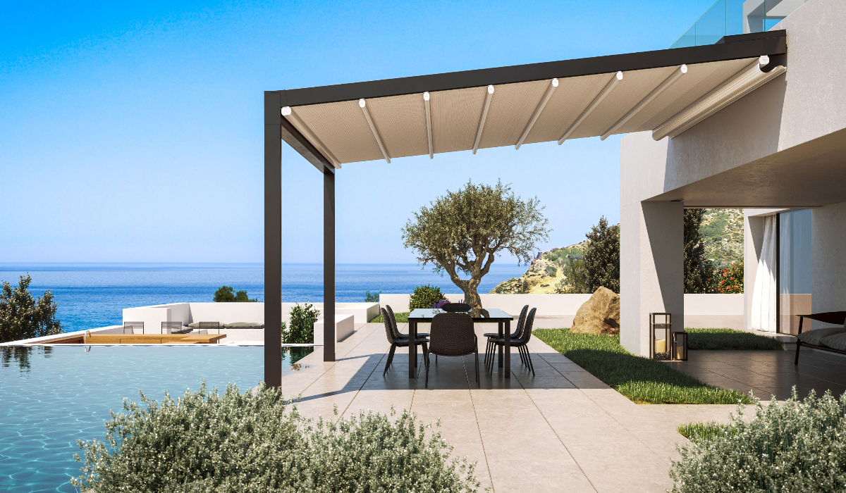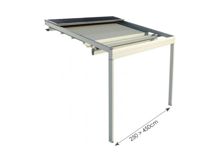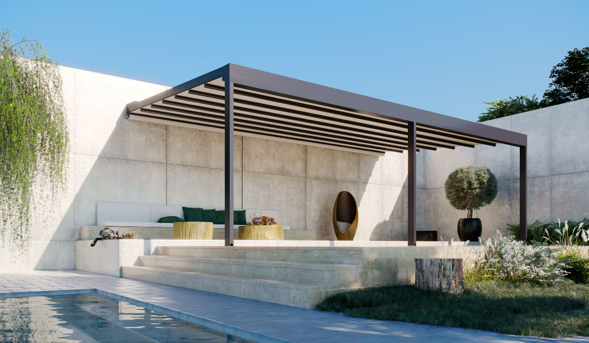 Il modello Zerro Uniq F (Frame) è un sistema di ombreggiatura unico che esce dall'ordinario. Il fronte che crea conferisce alla costruzione l'imponenza che si addice ad ogni spazio. Questo frontale arriva e chiude la pergola in una scatola, rendendola ideale per spazi minimali, dando vita a ricerche architettoniche.